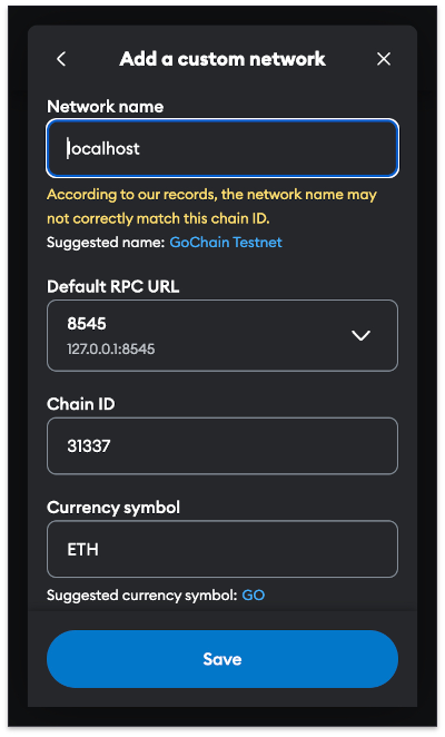 Add Localhost 8545 to Metamask